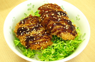 アツアツを変わりダレ・ソースにつけて♪